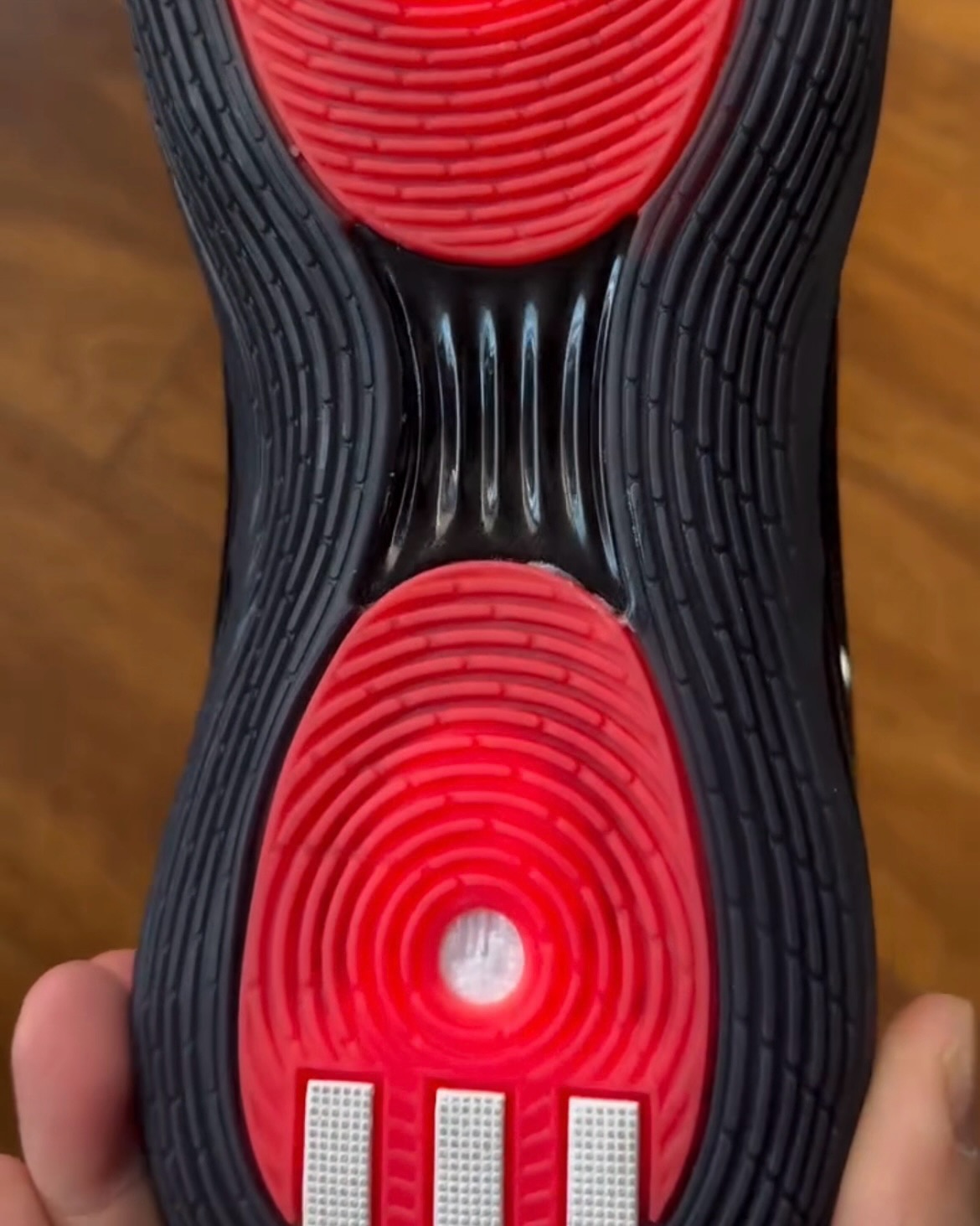这次红色使用更加克制,除了鞋头位置,更大面积是在外底部分。