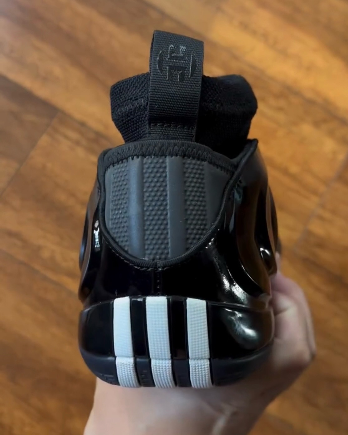 后跟的立体三线标志设计成类似赛道条纹的样式,充满速度感。