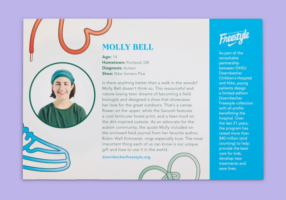 从 2004 年,Nike 每年都会与波特兰 OHSU Doernbecher 儿童医院合作,邀请患病儿童一起设计球鞋。
