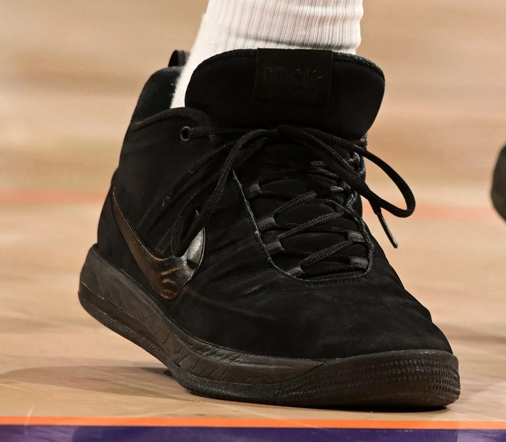Nike Book 2 发布之后,这双战靴未来最大的悬念就是各式配色了。 继发布时的两款首发配色后,近日布克在赛场上亲穿了第三双配色。 没错,就是各位非常熟悉的黑武士主题。 一席黑色并没有弱化鞋款的细节表现,反倒是不同材质的部分增强了质感层次。 并且可以说,这双黑武士 Book 2 真的可以无缝切换到场下作为穿搭鞋款。 这也是布克一直以来对于自己签名鞋的设计理念。 目前这双黑武士配色暂无市售信息公开,但小编感觉大概率最终会迎来市售,各位不妨保持期待。 Pic via:suns