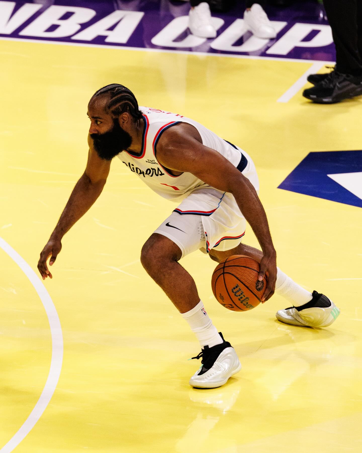 这款配色也是截止目前出镜率最高的一双,不仅得到哈登赛场首秀,当时参观工厂手里拿的也是这双。