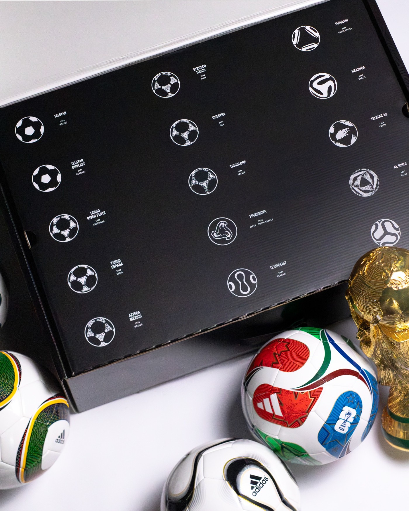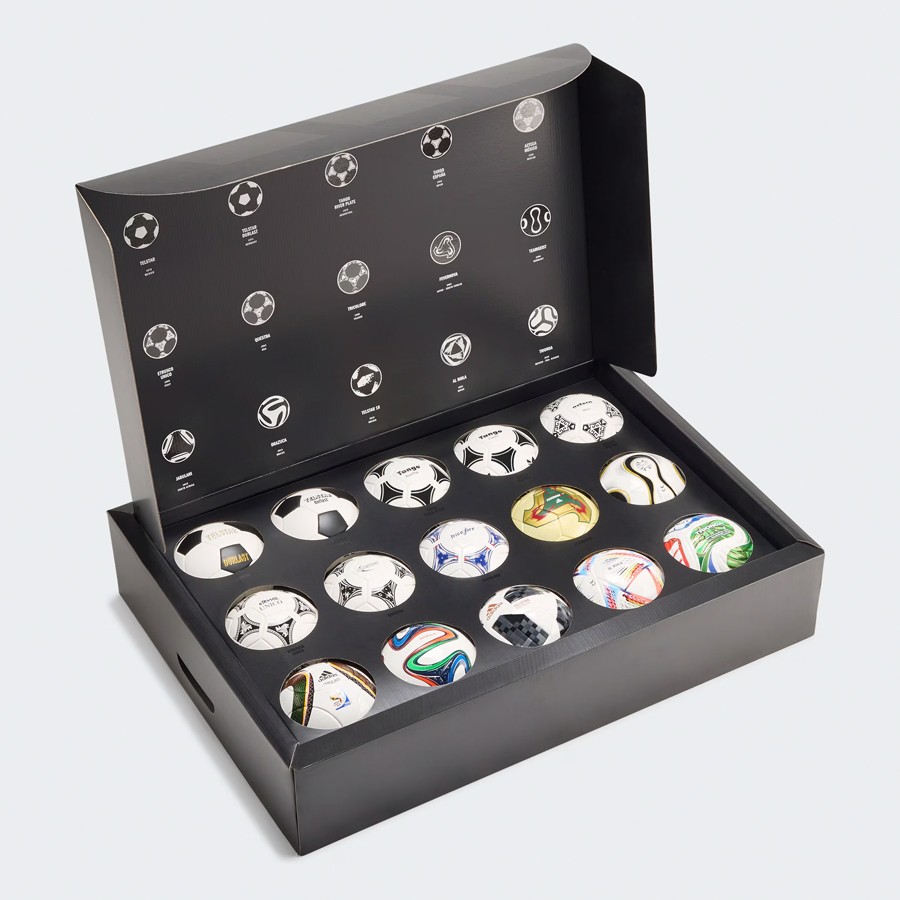 而在此前 adidas 正式发布世界杯官方比赛用球 TRIONDA “三重浪”后,还特别为球迷们准备了一个梦寐以求的惊喜,历届世界杯比赛用球的「迷你收藏套装」!