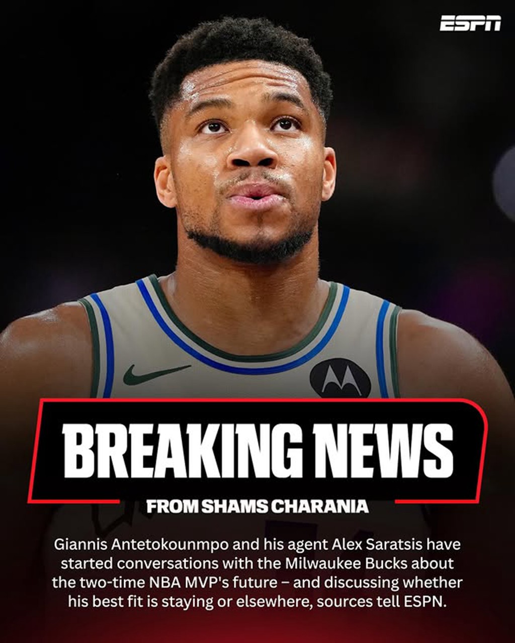 在 2021 年夺冠之后,重要成员相继离队,球队进入重建期,于是字母哥萌生去意。