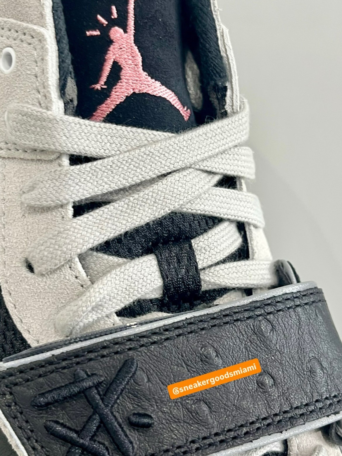 除了常规麂皮 + 织物的鞋面,还用到了鸵鸟皮纹理,带来不同以往的新鲜感。