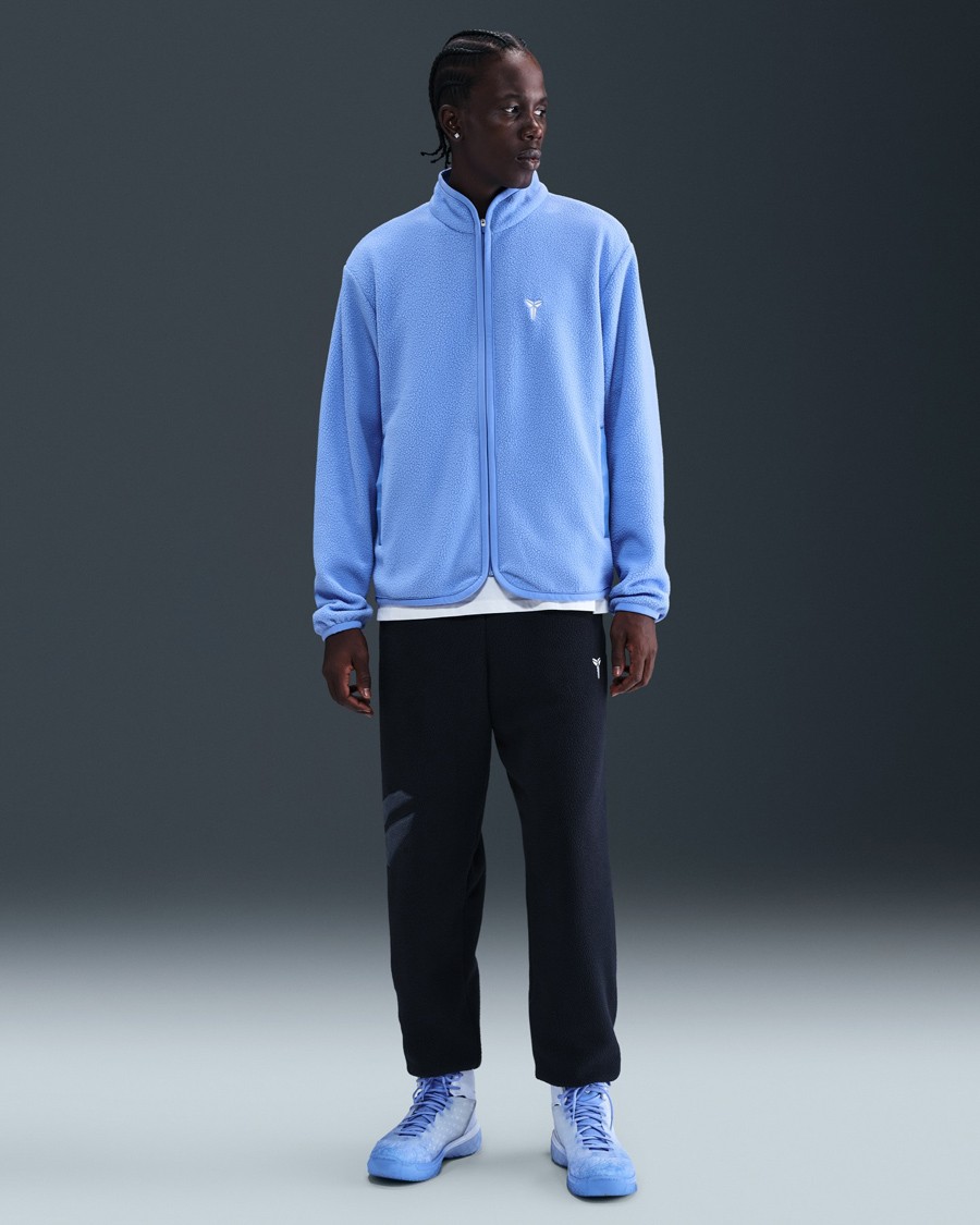涵盖长袖 T恤、短裤及抓绒外套等,配色均延续冰晶的天蓝装扮,并在 Kobe 剑鞘 Logo 加入冰冻效果,更具独一无二的圣诞主题氛围。