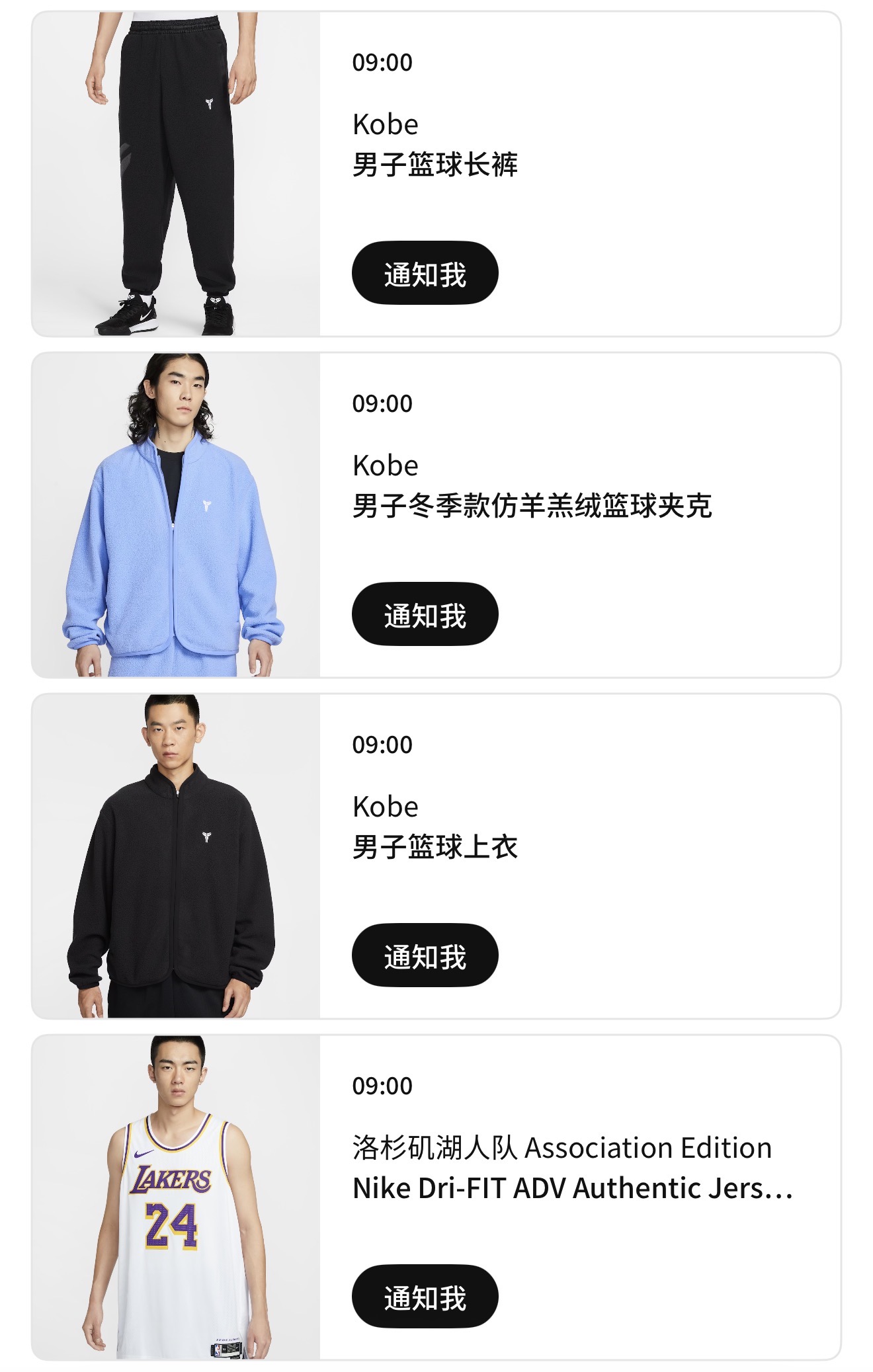 涵盖长 Tee、长裤、夹克以及久违的湖人队 24 号球衣。