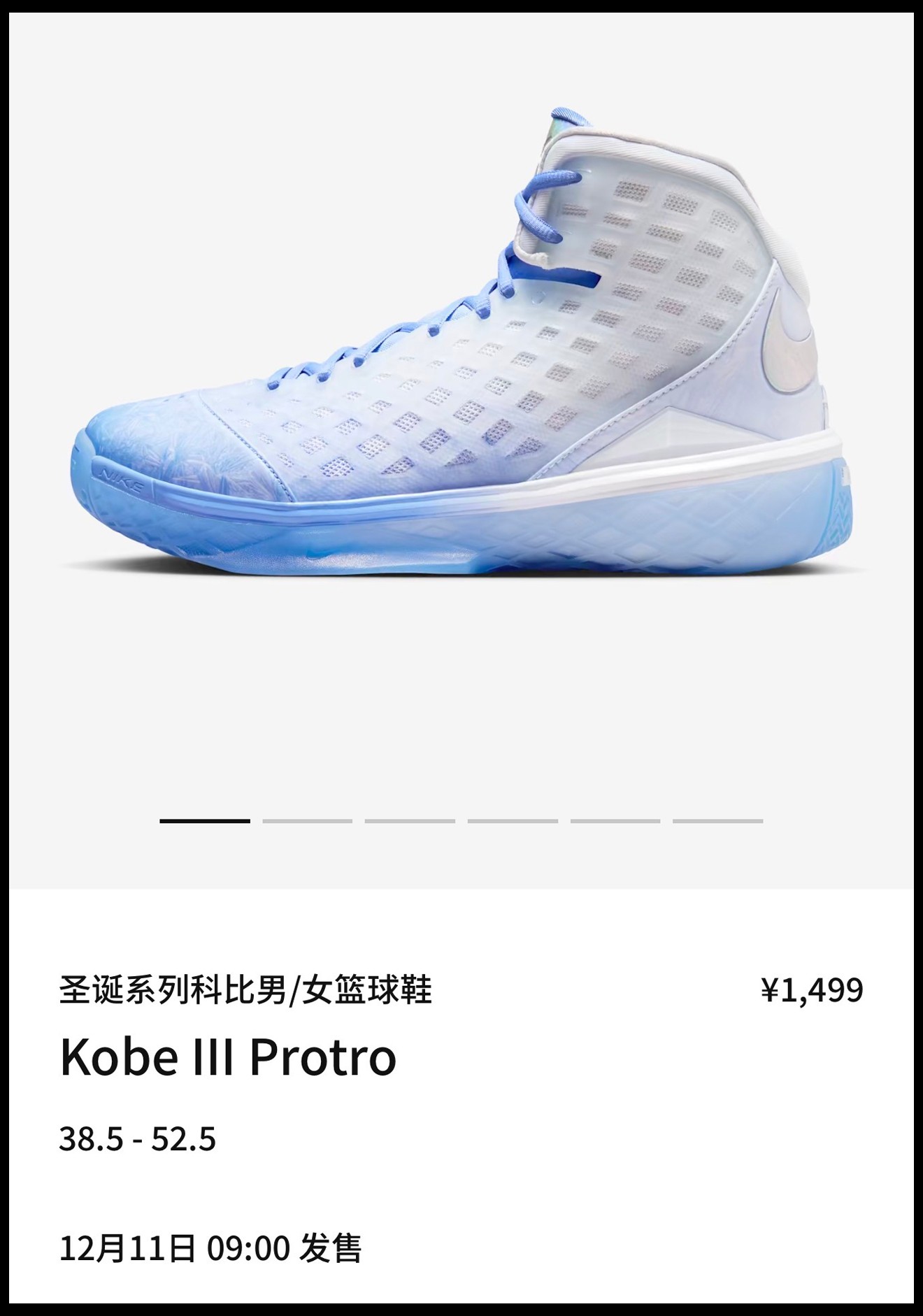 两款新品定价均 ¥1499 RMB,目前 Kobe 3 Protro 货量感觉不小,中午 11 点还有大部分尺码可以下单,当前市价约在 1K3 左右,成为又一款低于原价的 Kobe 正代战靴。