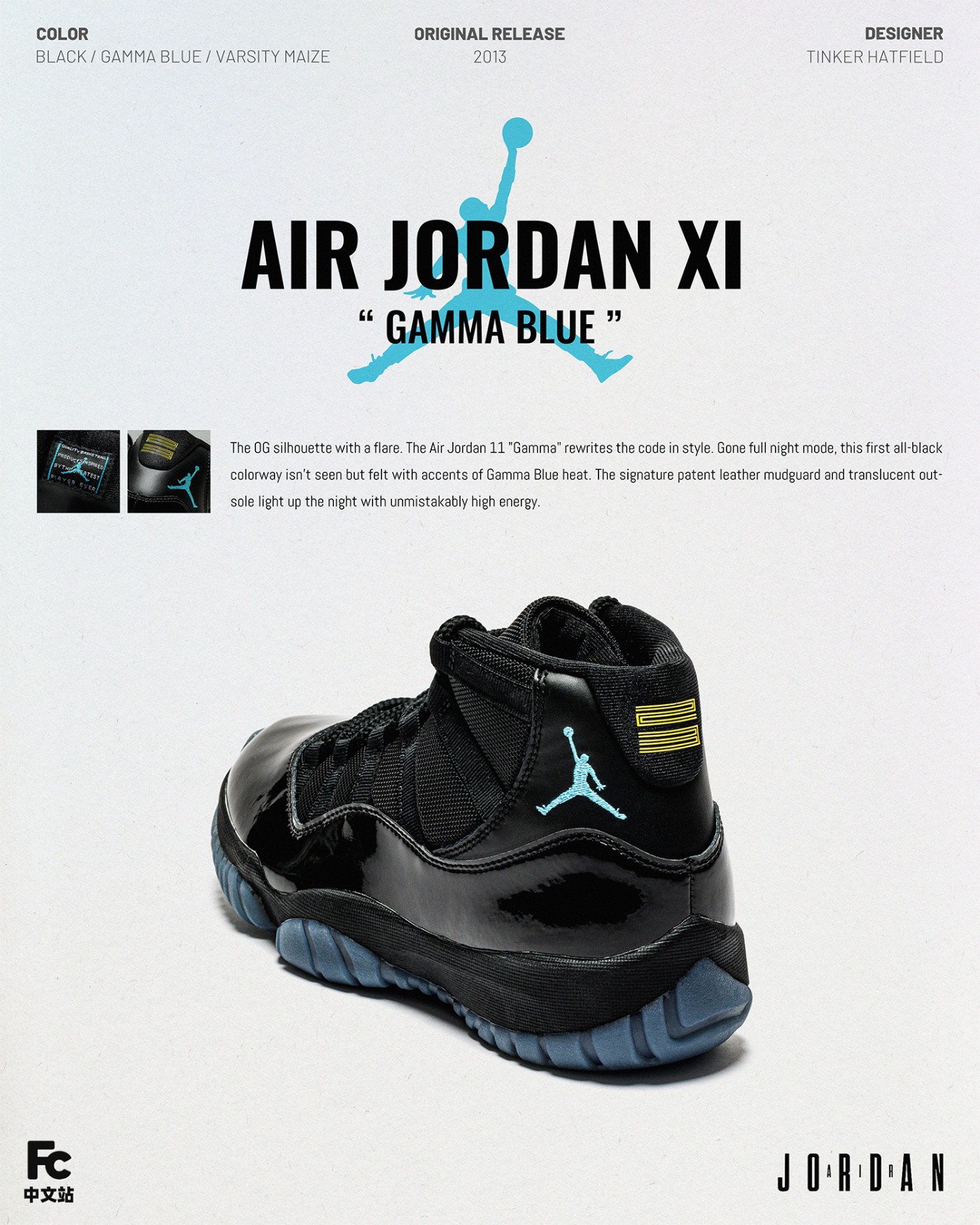 今天小编就带来其中关注度最高的两款,伽马蓝 Air Jordan 11 “Gamma” 和中国限定 Air Jordan 11 “China” 的实物开箱及上脚展示,看看有着怎样的精彩呈现。