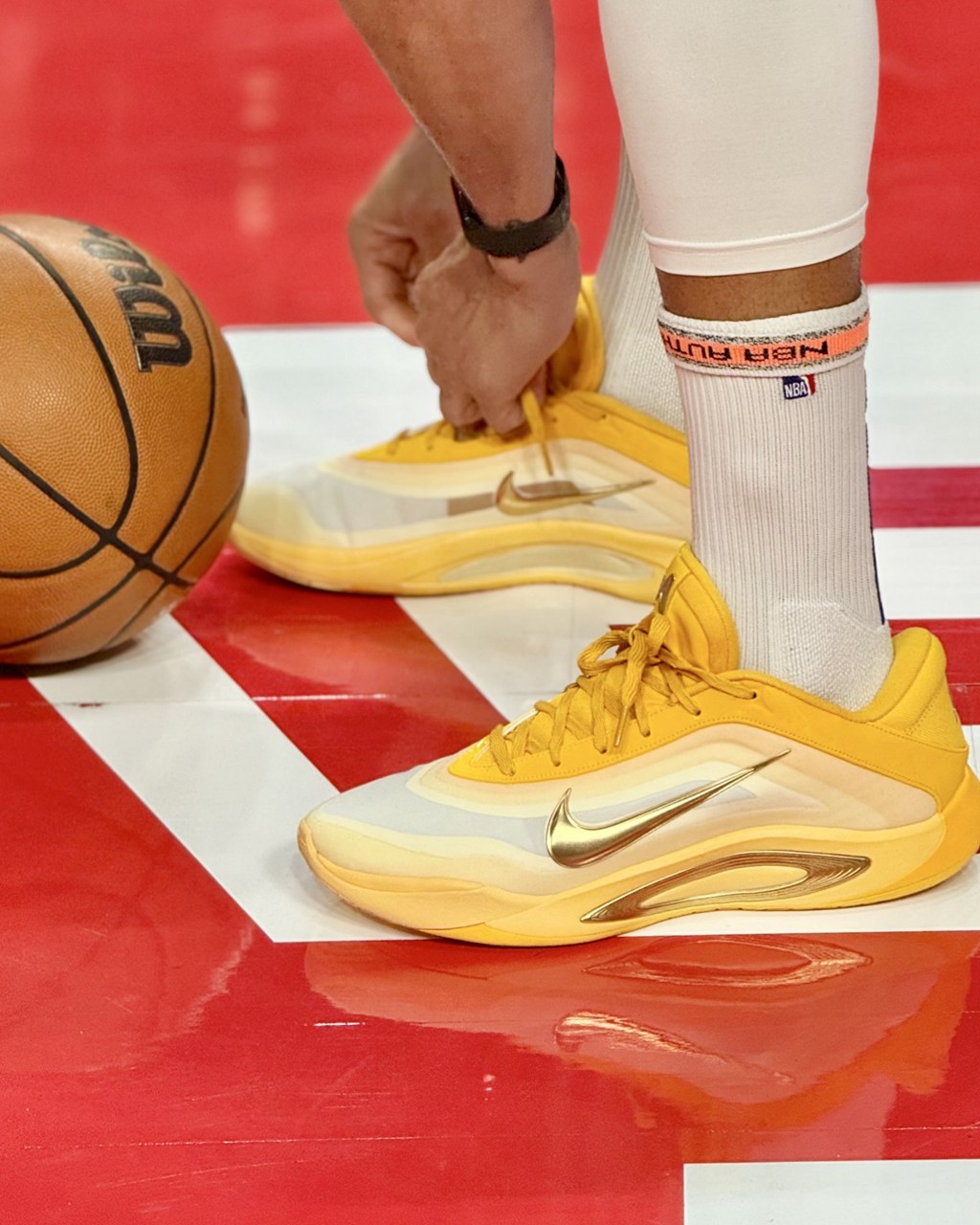 紧接着又在热身和比赛环节分别上脚 CLOT x adidas AE1 Low 和 AE2,呼应如今的森林狼大当家华子。
