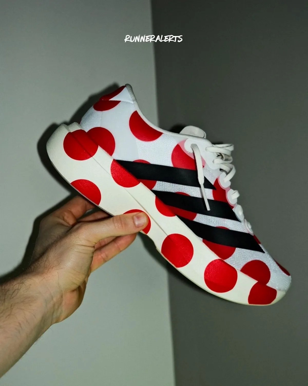 以简洁的黑白配色呈现,鞋面上布满了醒目的红色波点,还以为是草间弥生标志性的圆点元素,使其与普通的 Evo SL 鞋款区别开来。