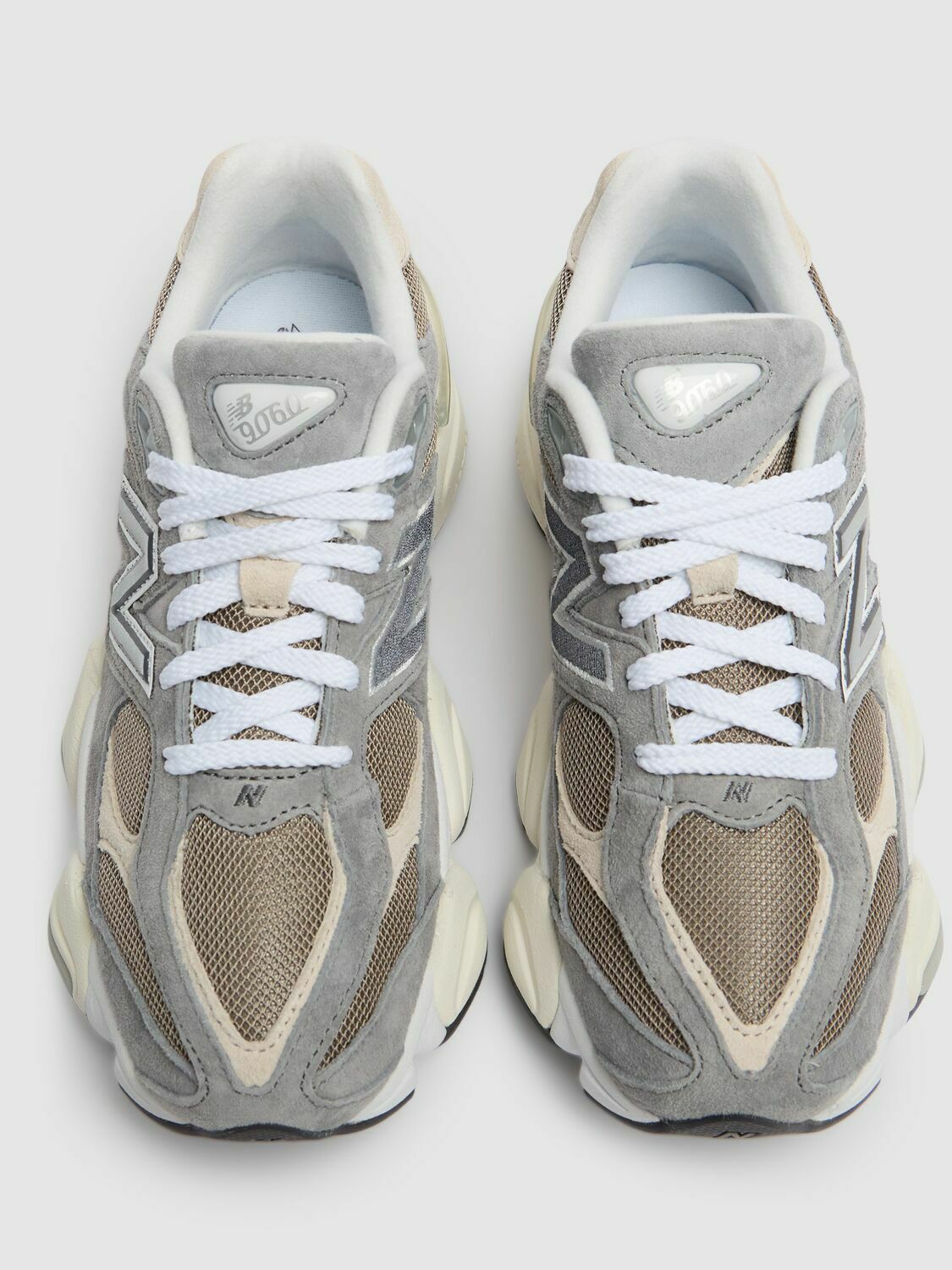 长裤盖住鞋面大部分,但还是一眼就能认出这双是 New Balance 9060。