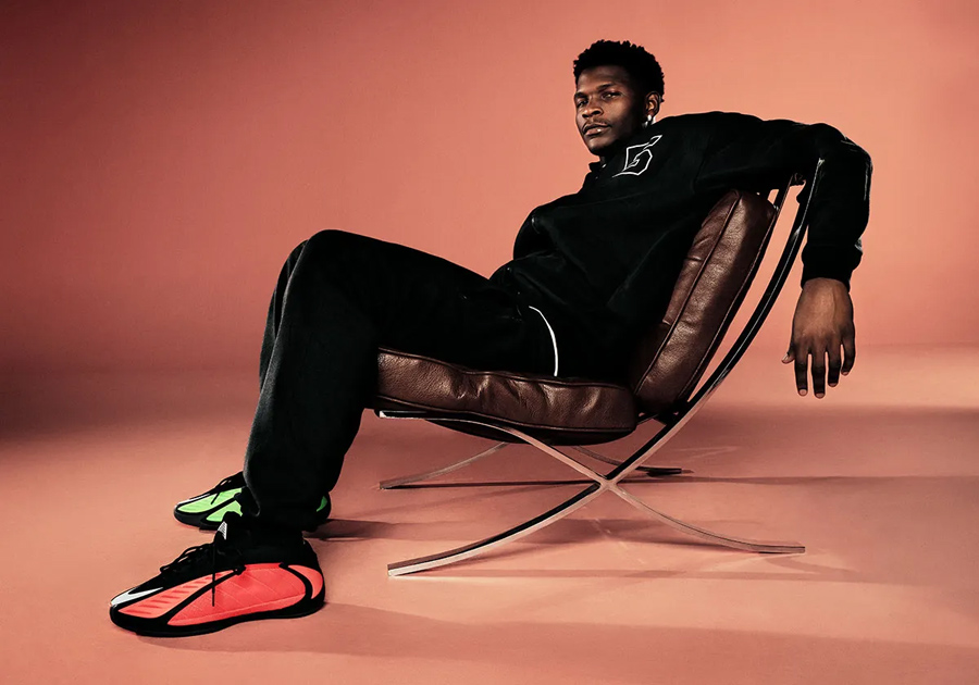 整体构色方案采用传统的圣诞红绿装扮示人,不过通过鞋身的黑色勾勒,进行了内外撞色区隔,凸显华子个性张扬的鲜明球风。
