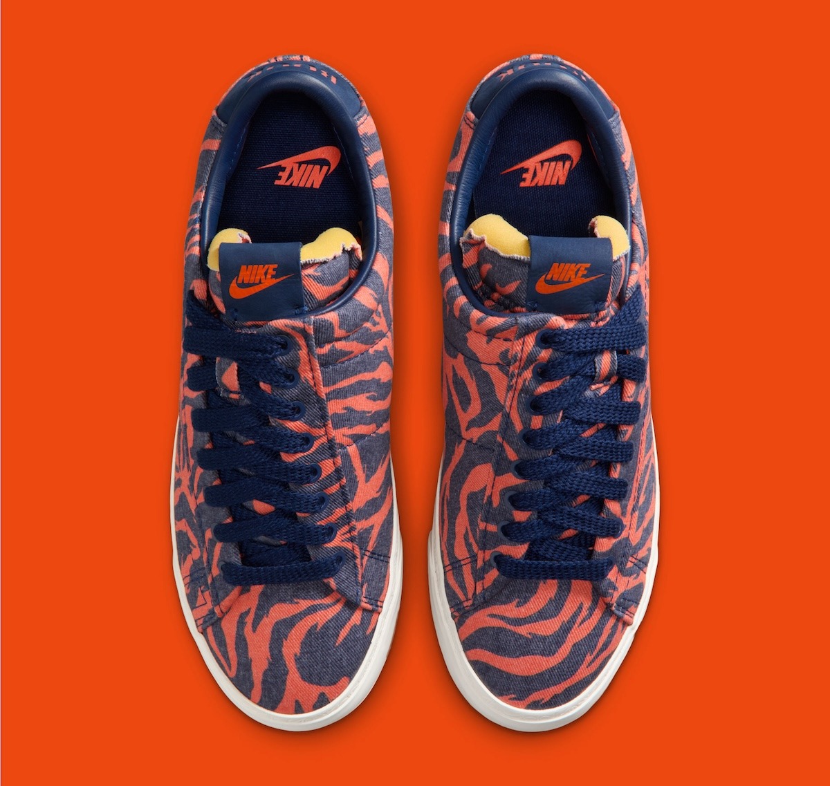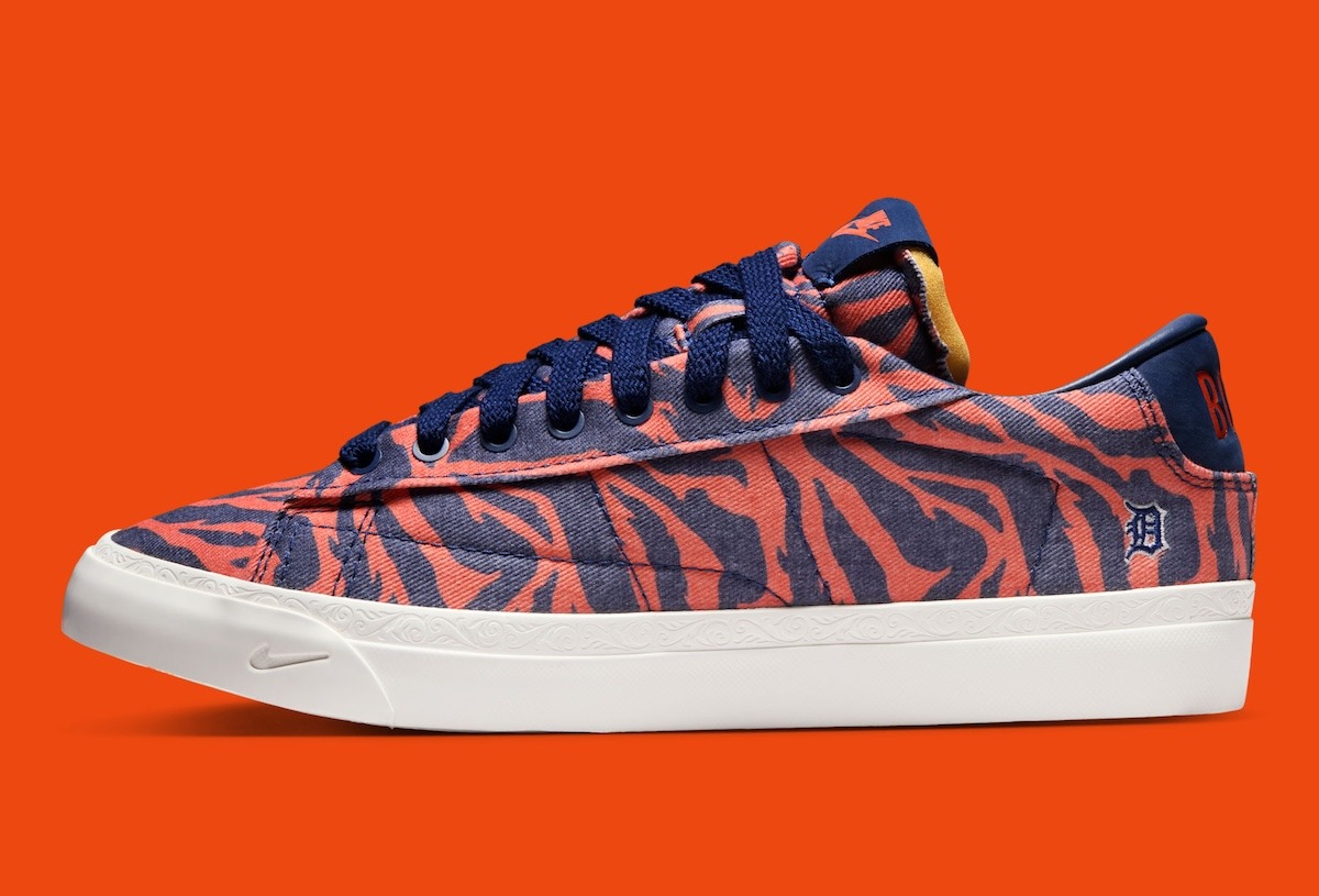 这一次以低帮的 Nike Book Blazer Low 为蓝本,呈现了棒球队底特律老虎的主题。