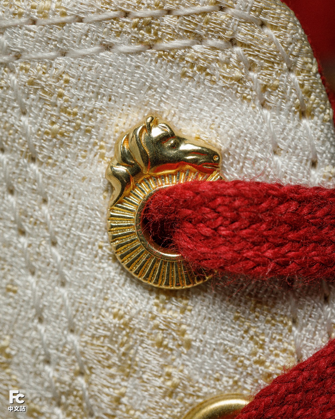 鞋带孔还有马首元素装饰,结合后跟鎏金马蹄 D 扣,更是呼应着踏金启运,马上 “起飞” 的美好寓意,非常应景。