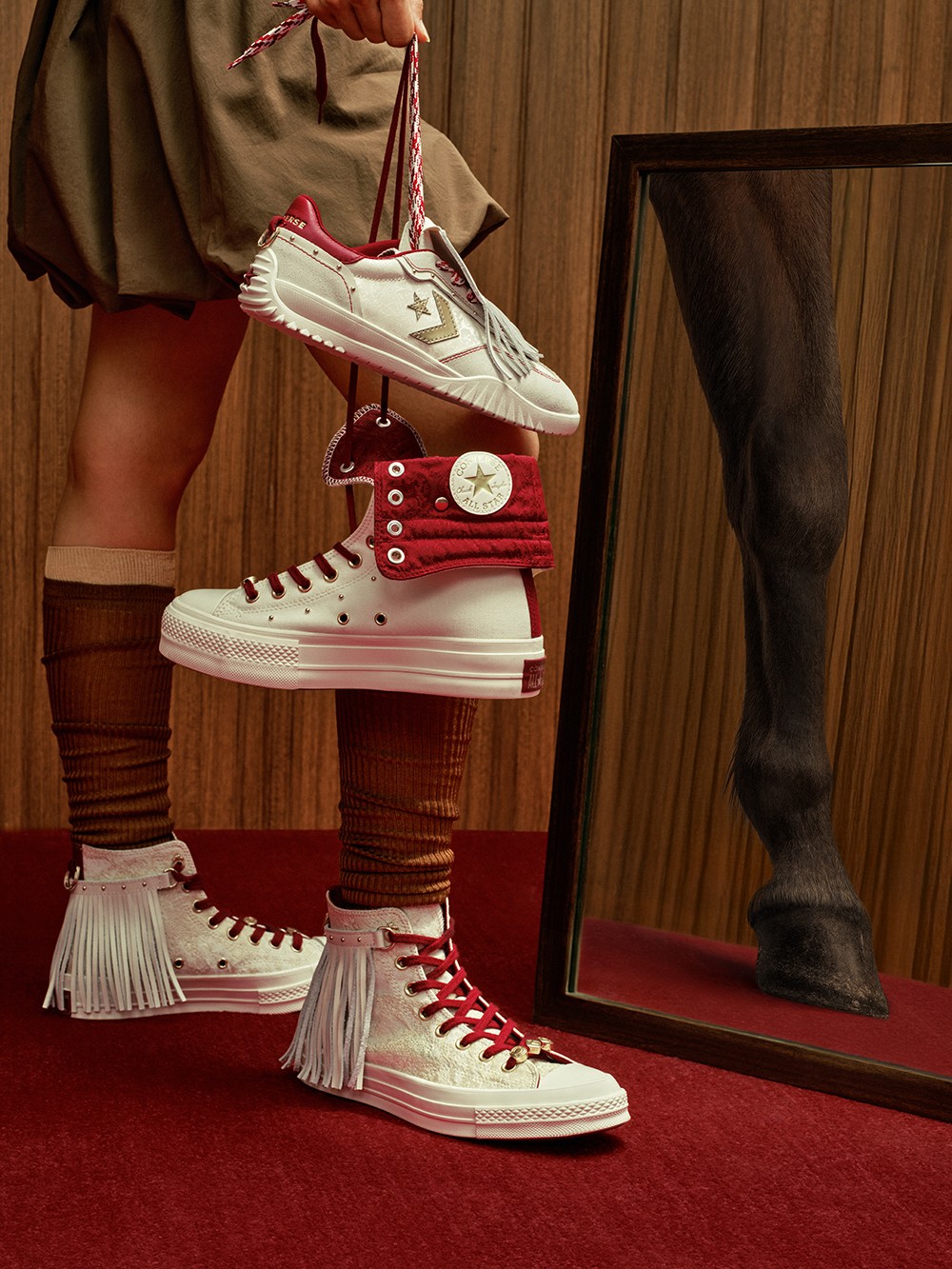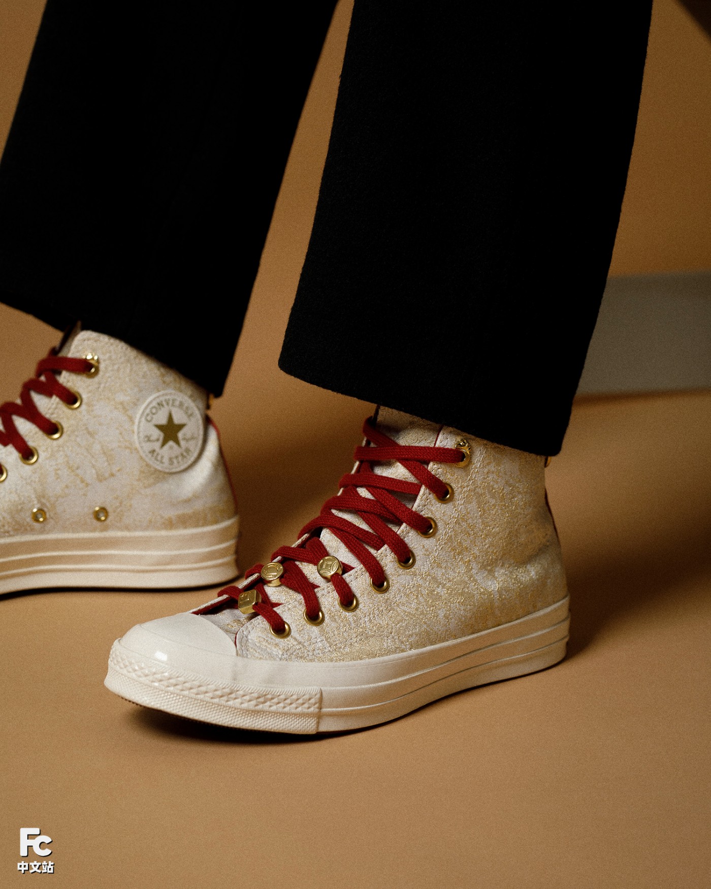 搭配中国红内衬、鞋带以及后跟专属的红金三星标点缀,释放出优雅又鲜明的节日氛围。