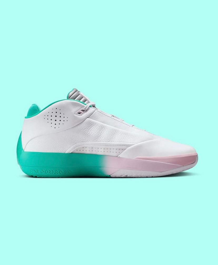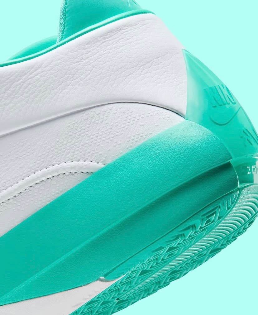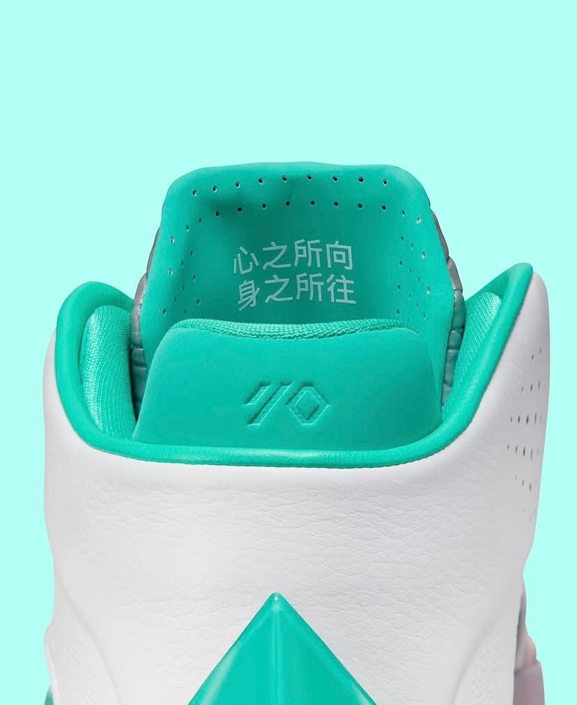 延续了郭艾伦配色的设计精髓,依然是薄荷绿色为主调,这次特别的是,中底前部分用到了粉色。