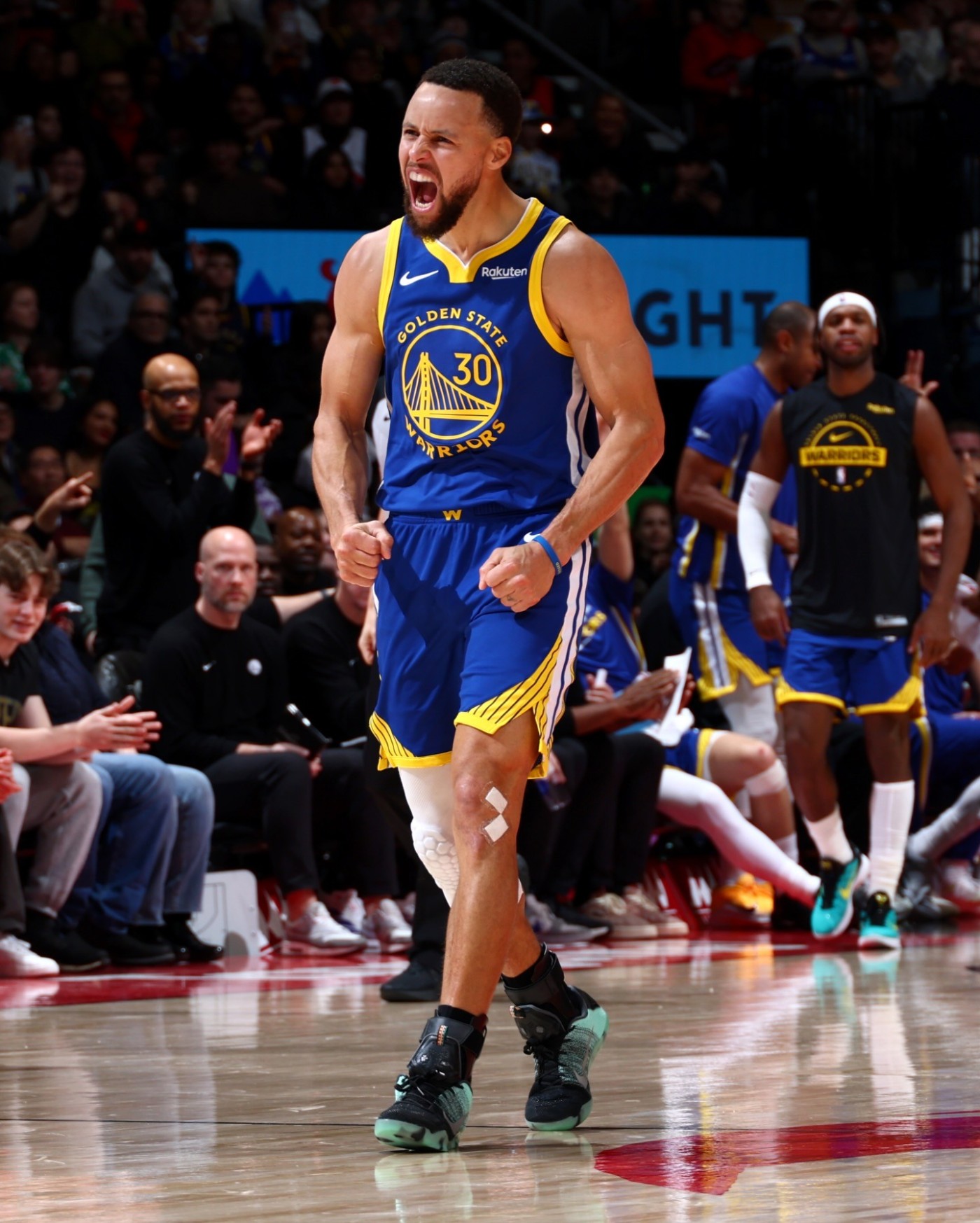 库里的赛场球鞋上脚,无疑是近期全球球鞋媒体所关注的焦点。 在今天对阵多伦多猛龙的比赛中,他选用了一双 Nike Kobe 11 “All Star” 全明星配色,以致敬九年前的科比。 当年的 2016 多伦多全明星赛上,科比正是穿着了这款战靴。 九年后,库里在多伦多选用此款配色,致敬意味浓厚。 Kobe 11 对于科比来说也是非常重要的一双鞋,他在 2016 年 4 月 14 日完成职业生涯最后一战,脚上穿的就是黑金配色的 Kobe 11。