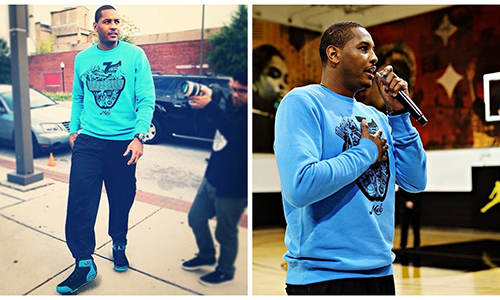 安东尼亲着Jordan Melo 1.5 黑北卡配色