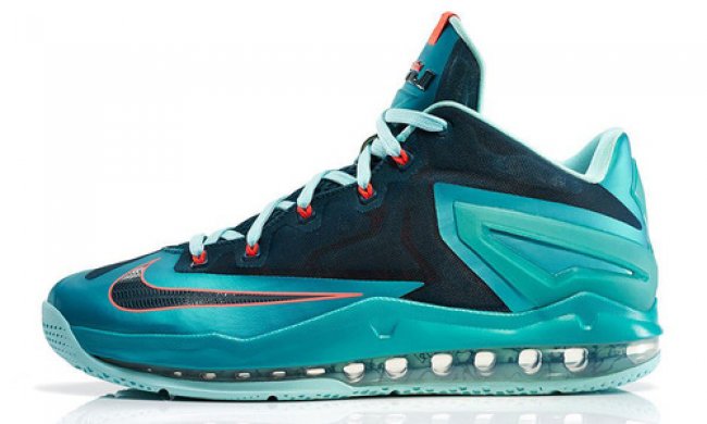 鞋身以极速绿搭配暗夜色,并配上冰川蓝色内衬/鞋带以及大底,细节点缀镭射红色,此款全新LeBron 11 Low由官方正式发布,货号642849-300,5月24日正式发售。