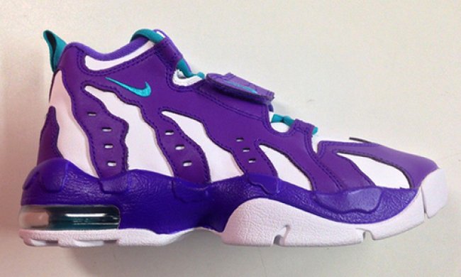 夏洛特黄蜂队即将回归,Nike借此怀旧复刻推出黄蜂配色Air DT Max 96 GS。鞋身选用白色皮革搭配毒液紫色牛巴革,细节点缀极速绿色。此款货号616502-501,现已发售。