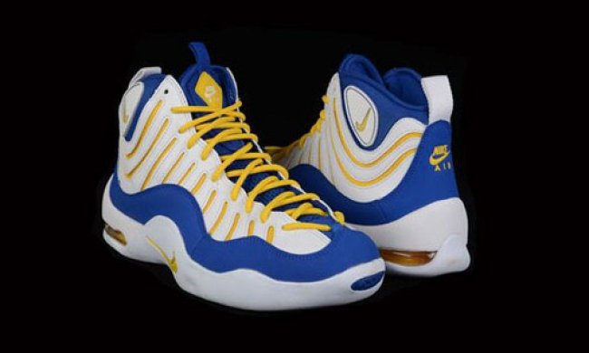 本周末Nike将正式推出金州勇士配色Air Bakin,此版本为纪念Tim Hardaway、Mitch Richmond以及Chris Mullin的Run TMC组合而特别打造。白色皮革搭配皇家蓝色牛巴革制作鞋身,黄色作为装饰点缀于线条