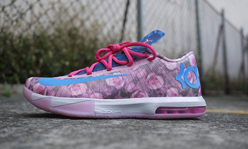 Nike KD VI Supreme Aunt Pearl是为向已过世的Aunt Pearl致敬而特别打造的。粉红色玫瑰图案覆盖鞋身之上,搭配粉红色大底。亮眼的蓝色细节点缀其中,鞋舌上印有标志性的Kay Yow Logo。预计将于