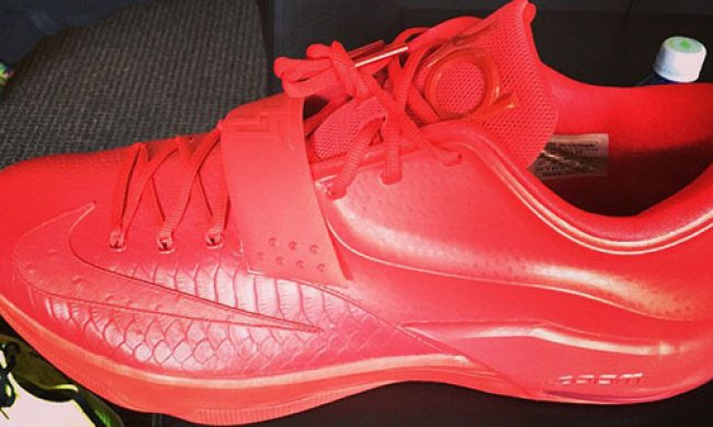于上周末在国内正式发售的Nike KD 7 Global Game 因它出彩的大红配色及不俗的细节设计,令其成为了目前最受欢迎的Nike KD 7 配色。而Kevin Durant今日也在自己的社交媒体上曝光了自己的Nike