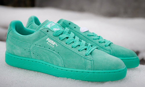 大面积绿色麂皮打造的鞋身,令Puma Suede 呈现出全新的感觉,再辅以绿色中底及鞋带,鞋款整体极为清新。据悉眼前这双Puma Suede 全新Electric Green 配色 现已上市。
