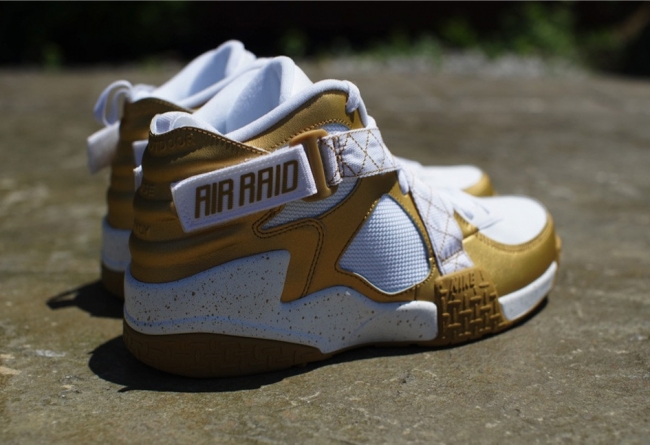 经典街头篮球鞋Nike Air Raid推出全新Metallic Gold版本,鞋身以简洁的白色为主色调,搭配白色泼墨中底及内衬,醒目的金色点缀在鞋面、大底、鞋面Logo点缀之上,低调而奢华。Nike Air Rai全