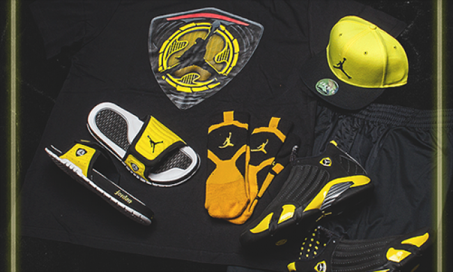 Thunder雷公配色方案重出江湖,使用在Air Jordan 14之上,打造出全新Air Jordan 14Thunder鞋款。黑色牛巴革鞋身搭配明黄色细节,中底及鞋舌处辅以银色点缀,令鞋款低调却不失亮点。据悉,