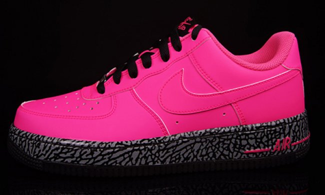 每一双新款 Nike Air Foamposite 发泡球鞋都会有配套的 Air Force 1 鞋款,而为了配合全爆裂鞋面的Nike Air Foamposite Pro Elephant Print,一款黑粉爆裂配色的 AF1 即将发售。 采用黑色鞋身,搭配全爆