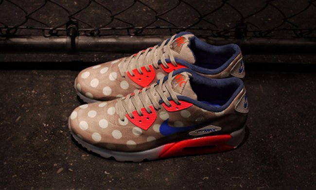 这款全新配色的Nike Air Max 90 Ice来自全新的城市系列,该鞋款以美国纽约为设计主题。淡棕色鞋身搭配半透明Ice中底,醒目的红色及绿色点缀细节处,再辅以独特的波点设计,令这款全新