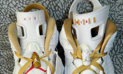 网上曝光一双金牌时刻Air Jordan 6的备选样品,乍看之下极为相似,但在部分细节有所不同。市售版的鞋舌Jumpman logo为金色,而样品为红色;市售鞋舌的AIR JORDAN字样为粗体/金色,样品为