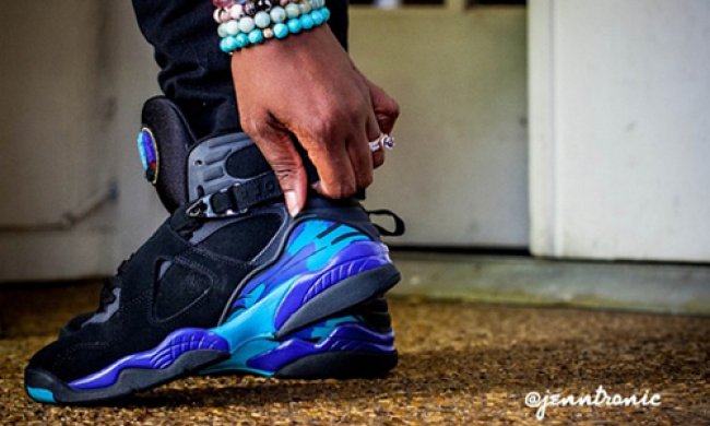 经典的Air Jordan 8 Aqua 传出发售流言,继 07 年的复刻后,今年的黑色星期五或将再次复刻回归。 以黑色麂皮鞋身搭配蓝紫中底和细节点缀,也颇受明星青睐,Jay-Z、Kanye West 都曾上脚穿着