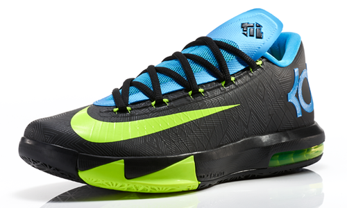 Nike为Kevin Durant 打造的第二双客场配色KD6即将上架。黑色Hyperfuse鞋面附有几何纹理装饰,荧光色细节象征KD如闪电般出击的能力。此款将于1月11日正式发售。