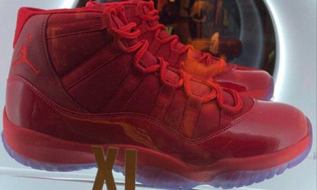 之前曾有谍照曝光的纯红色Air Jordan 11如今正式展示于Nike Chicago的橱窗中。这款全新配色11以统一色调的漆皮、皮革以及网面织物搭配制作,再配以冰蓝色水晶大底。