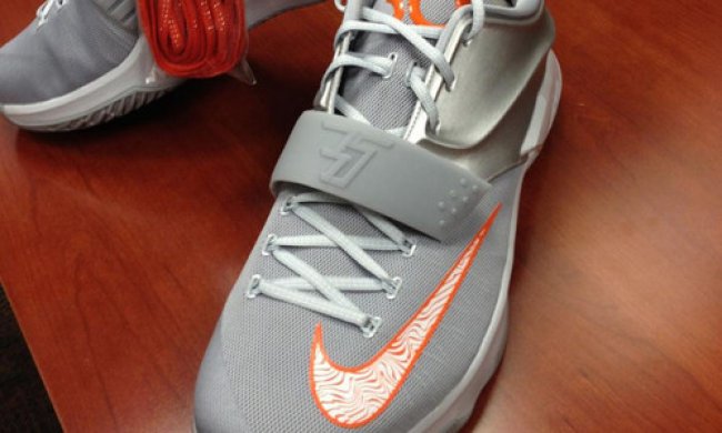 为德克萨斯大学长角牛队打造专属配色是每年Nike KD鞋款的惯例,今年也不例外。由UT官方装备账号曝光,金属银色鞋身配以标志性的橙色细节,通过照片暂时没有发现任何与长角牛有关