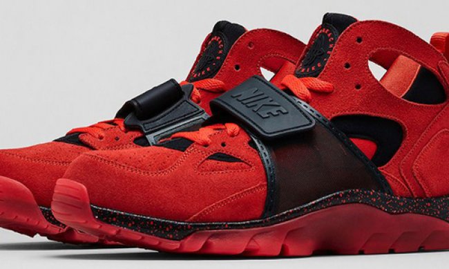 Nike正式发布包含Air Flight Huarache以及Air Trainer Huarache的爱与恨系列鞋款。Air Flight Huarache以黑色作为主色调,搭配无烟煤以及挑战红色细节,鞋身附上反光材质装饰,中底辅以红色泼墨点