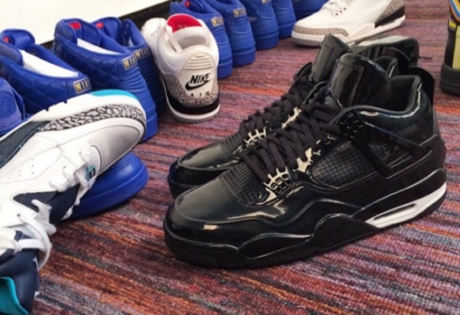 Jordan Lab 的新成员 11Lab4 将经典的漆皮元素在 Air Jordan 4 鞋型上全鞋面覆盖,已经曝光了黑色漆皮和红白两款配色,今天带来更多关于黑色漆皮配色的实物图片。 以颇具光泽的黑色漆皮鞋