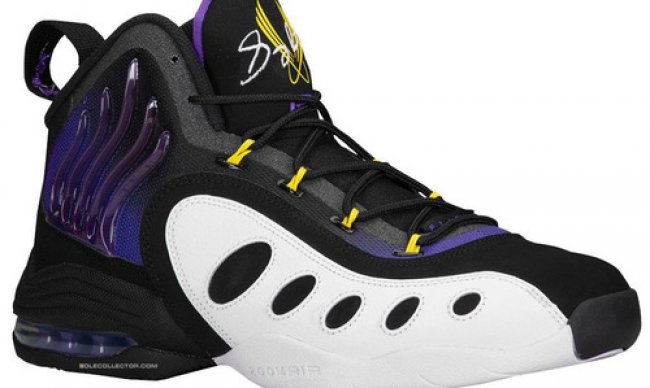 虽然2003年时的湖人四大天王未能捍卫天使城的荣耀,最终与总冠军失之交臂,但这仍是不少球迷的美好回忆,其中必定少不了Gary Payton的身影。为此,Nike特别打造湖人配色杂交鞋款Zo