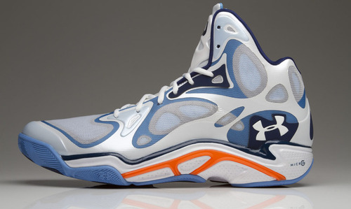 白色鞋身搭配卡普里蓝以及橙色点缀,鞋身印有KW标志,这便是Kemba Walker本赛季在山猫队着用的Under Armour Anatomix Spawn专属版本,现已在美国地区部分店铺发售。