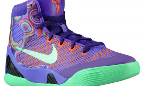 早前已有实物曝光的全新 Nike Kobe 9 Elite GS 正式发售。此款选用紫色作为鞋身主色调,鞋身附有少许橙色点缀,脚踝部分则印制类似手绘图案装饰,再配上淡绿色大底。