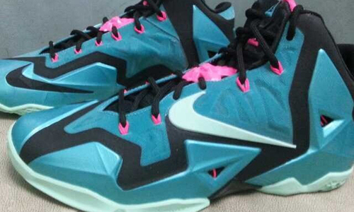 Nike LeBron 11曝光多款全新配色,眼前这款则颇为眼熟。选用水蓝色搭配黑色并点缀粉色,标志性南海岸主题再次回归。