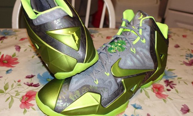 看来 Nike 在经典的 LeBron Dunkman 系列上颇费心思,除了已经市售的 LeBron 11 Dunkman,现在又有一款 Dunkman 配色的的 LeBron 11 实物曝光。 依然延续了荧光绿和灰色的搭配,只不过色彩搭配有些