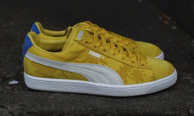 热带黄色麂皮制作鞋身,鞋面印有花卉以及棕榈树纹理装饰,配上同为麂皮物料的淡色swoosh以及皇家蓝色后跟。此款Puma Suede现已正式发售。