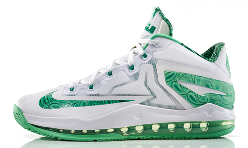 Nike LeBron 11 Low 象征 LeBron James 签名鞋的进一步升级,低鞋帮、全掌 Max Air 气垫以及鞋身分块式设计足以提供最佳的灵活性以及透气性。复活节系列配色以简洁色彩辅以佩斯利印花装饰,