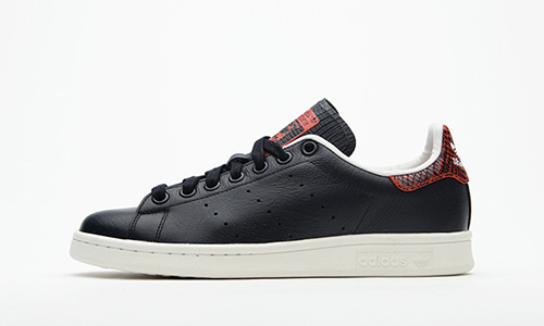 adidas Stan Smith 于近日再次推出全新 Elephant Leather配色。黑色由黑色皮革打造而成,搭配白色中底。鞋面上印制有特殊大象皮爆裂纹路,后跟则辅以红色蛇皮细节点缀。这双adidas Stan Smit