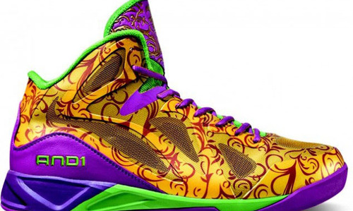 送别狂欢节迎来大斋节,AND1同样打造节日别注鞋款。印第安纳步行者队摇摆人Lance Stephenson穿上了极富节日气息的Aqua Mid Sir Lance A Lent PE。金色鞋身附着暗红色花纹,细节辅以绿色以及紫