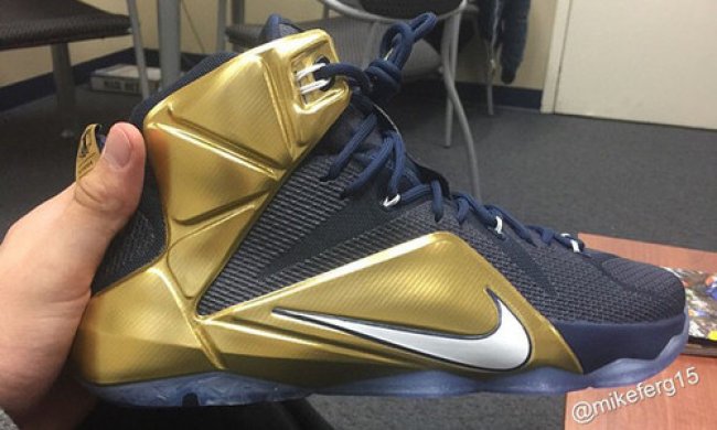 LeBron James回到家乡,黑金色调也随之一同回归。网上曝光一款疑似为阿克伦大学球队打造的Nike LeBron 12 PE,黑色Hyperfuse鞋身搭配金色Hyperposite,再配以冰蓝色大底,整体颇具王者气息。