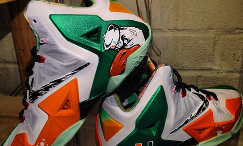 LeBron 11 个性定制“迈阿密大学飓风” 实物图赏